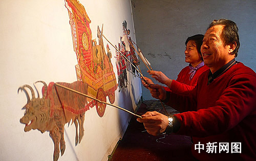 中新網(wǎng)2月6日電(馮文芳)2月5日,山西省侯馬市西侯馬村,皮影戲傳承人李世偉、皮影雕刻大師趙翠蓮夫婦耍起牛車和影人,表演皮影戲《鬧社火》,慶祝傳統(tǒng)元宵佳節(jié)。夫婦倆邊操作邊演唱,字正腔圓的唱段、妙趣橫生的臺詞、活靈活現(xiàn)的表演,受到鄉(xiāng)親們的歡迎。人們紛紛落座觀看,盡情享受這一獨(dú)具魅力的民間文化大餐。