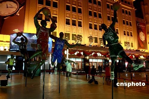 圖:“NBA全明星”現(xiàn)身北京王府井大街