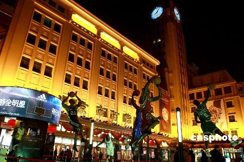 2月6日晚,“NBA全明星”現(xiàn)身北京王府井大街,吸引不少市民的目光。隨著元宵節(jié)、情人節(jié)的臨近,北京各大商家已開始布置門面,節(jié)日商戰(zhàn)悄然打響。中新社發(fā) 鄭雄增 攝