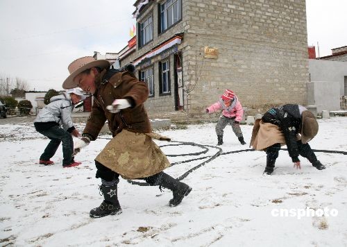 2009年2月25日,藏歷土牛新年大年初一,藏族小朋友們穿著新衣服過(guò)大年。中新社發(fā) 張權(quán) 攝