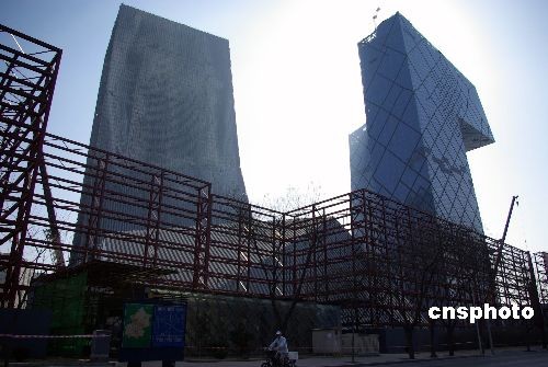 2月27日,工人們正在給央視新址火災(zāi)現(xiàn)場搭建護(hù)欄。據(jù)專家勘察,央視新址北配樓主體結(jié)構(gòu)未受嚴(yán)重影響,專家建議采取剝除“外衣”局部修復(fù)的方式維修該樓,估計(jì)年內(nèi)能修復(fù)完成。 中新社發(fā) 九州 攝
