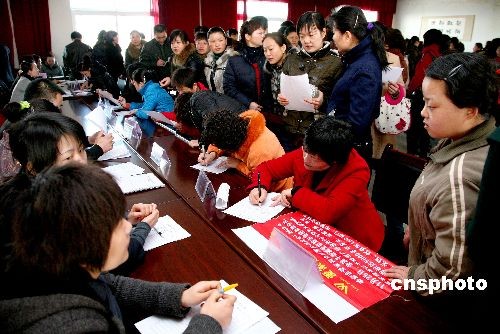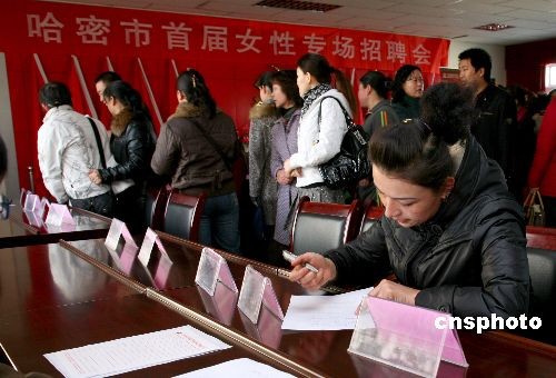 2月28日,新疆哈密市舉辦首屆女性專場招聘會,哈密市婦聯(lián)組織57家企業(yè)為下崗、待業(yè)和外來務(wù)工婦女準(zhǔn)備了600多個崗位,吸引了千余名婦女前來應(yīng)聘。中新社發(fā) 蔡增樂 攝