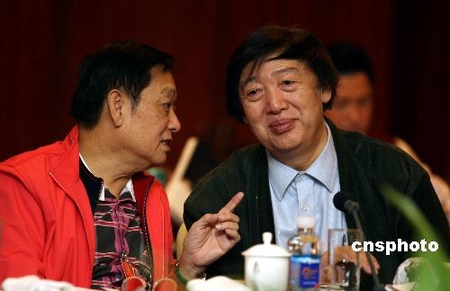 3月4日,全國政協(xié)十一屆二次會議進行小組討論,中國文聯(lián)副主席馮驥才和中國作協(xié)一級美術師韓美林在文藝小組上交流意見。中新社發(fā) 傅丹丹 攝