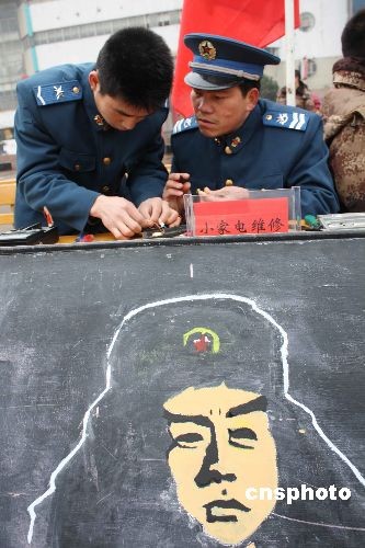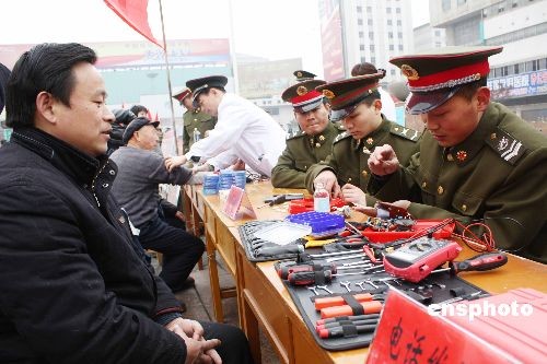 3月5日,青年志愿者在蚌埠火車站廣場參加“學(xué)雷鋒”獻愛心便民服務(wù)活動。當(dāng)日是全國“學(xué)雷鋒日”,共青團安徽蚌埠市委舉行了“爭做志愿者、創(chuàng)造新生活”為主題的志愿服務(wù)統(tǒng)一行動,部隊、機關(guān)、學(xué)校、醫(yī)院、企業(yè)等二十多個單位組成多個青年志愿便民服務(wù)隊,深入駐地農(nóng)村、街道、社區(qū)、敬老院、兒童福利院等地,積極開展醫(yī)療巡診、法律咨詢、計生宣傳、心理咨詢、環(huán)保宣傳、家電維修、安全消防、用電知識等多種服務(wù)活動。中新社發(fā) 耿國慶 攝