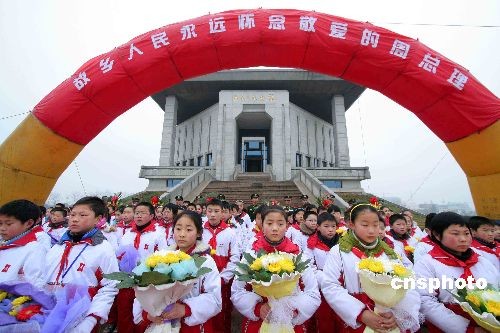 3月5日,當日是周恩來誕辰111周年紀念日,周恩來故鄉(xiāng)——江蘇省淮安市楚州區(qū)數千社會各界人士齊聚周恩來紀念館廣場,冒著綿綿細雨,緬懷敬愛的周總理。中新社發(fā) 李正林 攝
