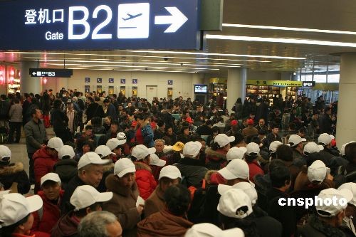 3月9日晨,成都雙流國際機(jī)場(chǎng)遭遇春季首場(chǎng)大霧天氣襲擊,為此雙流機(jī)場(chǎng)發(fā)布了三級(jí)預(yù)警信號(hào),機(jī)場(chǎng)被迫關(guān)閉5個(gè)多小時(shí),直接造成100余個(gè)進(jìn)出港航班延誤,致使近萬名出港旅客受阻于機(jī)場(chǎng),不能按時(shí)飛往目的地。中新社發(fā) 呂俊明 攝