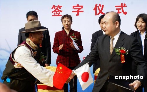 三月十七日,日本援助西藏扎囊縣醫(yī)院立民項(xiàng)目簽字儀式,在西藏自治區(qū)人民政府駐北京辦事處舉行。西藏自治區(qū)人民政府駐北京辦事處副主任趙國慶女士(右五)與日本駐華大使館公使片山和之先生(右四)出席了簽字儀式。此項(xiàng)目向扎囊縣醫(yī)院援助六十萬人民幣,扎囊縣常駐人口有三點(diǎn)六萬人。中新社發(fā) 馬偉東 攝