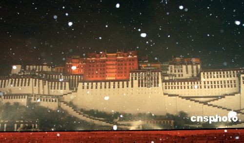 3月19日晚,拉薩市下起瑞雪,夜幕下,銀裝素裹的布達拉宮分外美麗。中新社發(fā) 杜洋 攝