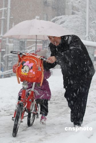 3月19日傍晚至20日,新疆烏魯木齊氣候突變,一場(chǎng)罕見的大雪替代了春雨,令剛沐于春色暖陽的邊城市民猝不及防。中新社發(fā) 張新軍 攝