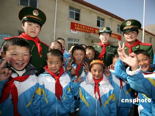 3月21日,武警西藏總隊醫(yī)院官兵與西藏拉薩奪底鄉(xiāng)中心小學(xué)開展了警民共建捐資助學(xué)活動,該醫(yī)院官兵共向奪底鄉(xiāng)中心小學(xué)捐資2萬元現(xiàn)金,贈送價值2萬余元的學(xué)習(xí)電腦。中新社發(fā) 錢檬 攝