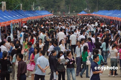 3月24日,廣西舉行促進(jìn)大學(xué)畢業(yè)生就業(yè)公共服務(wù)系列活動(dòng)啟動(dòng)儀式暨廣西民族大學(xué)專(zhuān)場(chǎng)招聘會(huì)。中國(guó)廣西人才市場(chǎng)將招聘會(huì)設(shè)在了大學(xué)校園,約5000名即將畢業(yè)的大學(xué)生參加招聘會(huì)。據(jù)悉,2009年在廣西畢業(yè)的大學(xué)生預(yù)計(jì)達(dá)13萬(wàn)人,就業(yè)壓力空前。為此,廣西人事廳將采取多種措施,在廣西各大學(xué)進(jìn)行專(zhuān)場(chǎng)招聘和一系列就業(yè)公共服務(wù)活動(dòng),零距離為畢業(yè)生提供服務(wù)。中新社發(fā) 劉萬(wàn)強(qiáng) 攝