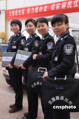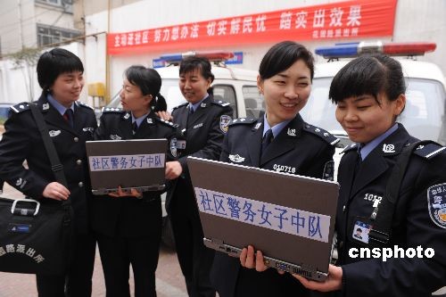 3月24日,鄭州市公安局金水分局花園路派出所結合轄區(qū)實際,以及青年女民警溫和細膩親和力強便于開展社區(qū)警務的特點和優(yōu)勢,由鄭州市公安局金水分局花園路派出所11名社區(qū)女民警組成的河南公安首支“社區(qū)警務女子中隊”正式上崗。據(jù)了解,該“社區(qū)警務女子中隊”采用分片聯(lián)勤工作機制,既有各自的社區(qū)警務責任分工,又有相互合作聯(lián)勤協(xié)調,優(yōu)勢互補。 中新社發(fā) 劉書亭 攝