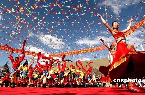 3月26日,拉薩舉辦“紅色歌曲-拉薩唱”活動,慶祝首個“西藏百萬農(nóng)奴解放紀念日”。中新社發(fā) 杜洋 攝