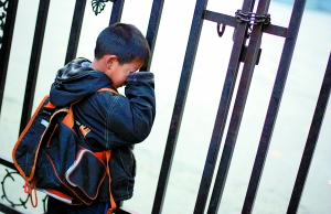 30日,一名學(xué)生在關(guān)閉的校門前拭淚。他所在的打工子弟學(xué)校位于朝陽區(qū)大望京村,面臨拆遷,他的父親正在與校方協(xié)商如何應(yīng)對。據(jù)家長們介紹,該村共有3所打工子弟學(xué)校,學(xué)生千余人。近日他們接到崔各莊鄉(xiāng)政府的公開信稱,由于城鄉(xiāng)一體化改造,望京村范圍內(nèi)6所學(xué)校,4月30日之前均將被拆除。家長們要求校方保障孩子上學(xué)。其中一所學(xué)校負(fù)責(zé)人稱,三周內(nèi)爭取將學(xué)生安置到其他學(xué)校,他希望政府出面協(xié)調(diào)。