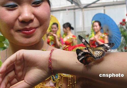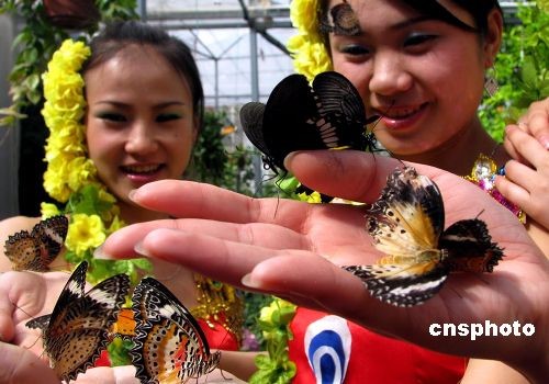 4月1日,位于北京植物園內(nèi)的熱帶蝴蝶生態(tài)園正式開園,數(shù)千只色彩斑斕的蝴蝶和數(shù)十種千奇百怪的蟲子將正式與游客見面。熱帶生態(tài)蝴蝶園是中國內(nèi)地首次從馬來西亞檳城蝴蝶園進(jìn)口的集昆蟲蝴蝶標(biāo)本、活體昆蟲展示和活蝴蝶放飛為一體的具有知識性、趣味性、科普性、教育性的昆蟲蝴蝶科普生態(tài)園,也是國內(nèi)第一家進(jìn)口的活體蝴蝶和昆蟲品種最全、規(guī)模最大、蝴蝶昆蟲標(biāo)本最多科普展。熱帶蝴蝶生態(tài)園共分為三個展區(qū):蝴蝶館、昆蟲館、科普標(biāo)本館。圖為蝴蝶生態(tài)園吸引游客。中新社發(fā) 錢興強(qiáng) 攝