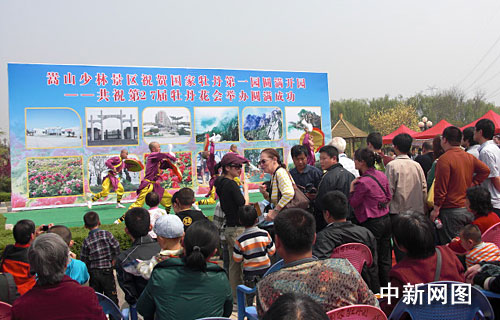 四月十四日上午九時,記者在龍門石窟秦時廣場及國家牡丹園廣場看到,在少林功夫表演臺前,聚集了大量的來自海內(nèi)外的游客。臺上弟子精彩的少林功夫及罕見絕技,令現(xiàn)場游客驚異無比,掌聲不斷。很多游客忍不住拿起手中的相機、手機進行拍照留念,留下難忘的少林印象。