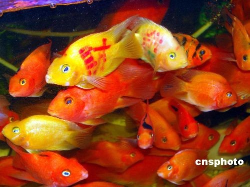 日前,杭州吳山廣場(chǎng)“紋身魚”火爆熱賣,魚身上分別紋上了“生”、“意”、“興”、“隆”、“恭”、“喜”、“發(fā)”、“財(cái)”的漢字,據(jù)商家介紹,剛引進(jìn)的時(shí)候每只只賣20多元,現(xiàn)在賣到100元一只,380元四只的價(jià)格,仍然供不應(yīng)求,杭州市民對(duì)這種魚似乎格外的喜歡,讓商家也很意外。中新社發(fā) 王磊 攝