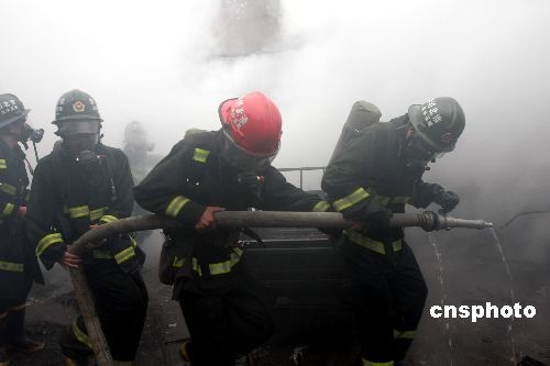 4月20日5時34分,安徽省濉溪縣虎山路東側(cè)口子批發(fā)市場附近一漁畜具倉庫發(fā)生火災(zāi);幢笔邢乐ш犗群笳{(diào)動3個中隊9輛消防水罐車、2輛消防指揮車, 80名官兵前往火場滅火。明火于早晨8時被撲滅。此次火災(zāi)過火面積150平方米左右,無人員傷亡。在撲救過程中,共搶救危險品8桶桐油、6罐氧氣瓶,疏散被困人員近200人。目前火災(zāi)損失和起火原因正在進一步調(diào)查中。中新社發(fā) 萬善朝 攝