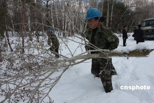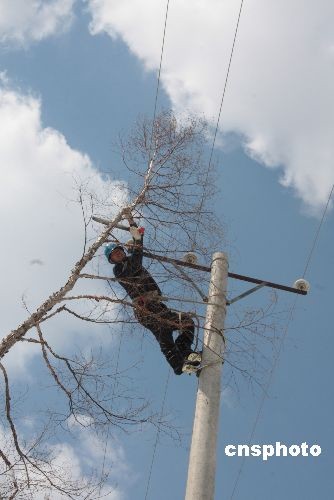 4月23日,當(dāng)牡丹江市電業(yè)搶修人員將三道林場內(nèi)最后一處電線桿上的刀閘閉合,7000多戶因暴雪導(dǎo)致斷電的人家,終于重新恢復(fù)正常的生產(chǎn)生活。 4月21日,黑龍江省牡丹江市出現(xiàn)雨夾雪天氣,其中牡丹江市三道林場的局部林區(qū)因當(dāng)?shù)亍靶夂颉庇绊懺馐鼙┭┮u擊,最深處的積雪厚度達到1米以上,林區(qū)內(nèi)的一些林木被大雪壓斷,通過林區(qū)內(nèi)的部分供電線路短路。從4月21日至4月23日,牡丹江市電業(yè)系統(tǒng)出動100多名搶修人員奮戰(zhàn)在40多公里的林區(qū)供電線路上,及時排除短路故障及線路險情。直到4月23日下午1點30分,各個停電村屯才陸續(xù)恢復(fù)供電。中新社發(fā) 莊文斌 攝