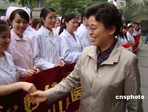 5月8日下午,來自四川省人民醫(yī)院、四川大學華西醫(yī)院、四川省腫瘤醫(yī)院等20余所醫(yī)院的醫(yī)務工作者,在抗震救災周年期間開赴災區(qū)進行為期10天的醫(yī)療衛(wèi)生服務。據(jù)了解,本次醫(yī)務工作者進災區(qū)開展醫(yī)療衛(wèi)生服務分為3個批次,將在都江堰、青川、北川等極重災區(qū)開展醫(yī)療義診、防疫保健、對口醫(yī)療技術職員以及抗震救災醫(yī)療衛(wèi)生系統(tǒng)先進事跡宣傳活動。圖為中共四川省委常委李登菊慰問即將開赴災區(qū)的醫(yī)療工作者。中新社發(fā) 王萌 攝