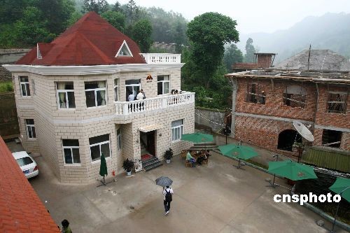 5月12日四川大地震將滿周年,都江堰大觀鎮(zhèn)茶坪村通過“聯(lián)建”房方式,已使倒塌的房屋變成嶄新的小別墅。該村緊鄰世界文化遺產(chǎn)青城山,全村共147戶,去年“5.12”大地震造成全村房屋受到不同程度的損壞,茶坪村在災后重建中運用統(tǒng)籌城鄉(xiāng)的思路和方式,結合農(nóng)村產(chǎn)權制度改革成果,利用旅游和基礎設施優(yōu)勢,引入社會資金采取“聯(lián)建”方式重建,突出后續(xù)產(chǎn)業(yè)發(fā)展,布局未來鄉(xiāng)村連鎖酒店業(yè),構筑村民可持續(xù)增收平臺,推進了災后重建與產(chǎn)業(yè)發(fā)展的統(tǒng)籌布局。中新社發(fā) 富田 攝