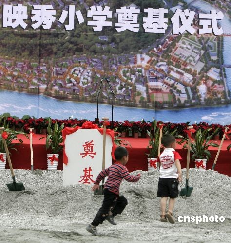 5月11日,四川省汶川縣映秀鎮(zhèn)災(zāi)后恢復(fù)重建項目開工暨映秀小學(xué)新校舍奠基儀式舉行。映秀小學(xué)在地震中校舍徹底倒塌,孩子們在板房上課至今。新校舍由深圳證監(jiān)局捐建,用地10446平方米,其中綠地面積大于35%,總投資2951.6萬元,擬建6層,可容納12個班,學(xué)校運動場作為臨時避災(zāi)場地。預(yù)計工期5個月。 同期開工的還有包括映秀幼兒園、中灘堡大道、漁子溪大橋和映秀鎮(zhèn)安居房等映秀鎮(zhèn)災(zāi)后恢復(fù)重建項目。中新社發(fā) 張曉理 攝
