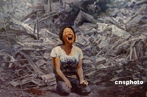 5月11日,在“5.12汶川地震”一周年之際,由中國(guó)文化部主辦的《堅(jiān)韌卓絕--2008·五月記憶》大型油畫(huà)展在北京首都博物開(kāi)幕。巨幅油畫(huà)展現(xiàn)給觀眾一幕幕撕心裂肺的悲慘畫(huà)面!5.12汶川地震”巨幅油畫(huà)出自江西省文聯(lián)組織的80多名藝術(shù)家的集體創(chuàng)作。中新社發(fā) 鄒憲 攝