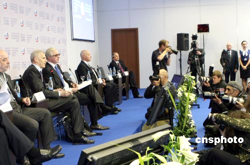 6月4日,“2009圣彼得堡國(guó)際經(jīng)濟(jì)論壇”召開(kāi),俄羅斯與美國(guó)就兩國(guó)關(guān)系“重啟”條件下,如何加強(qiáng)兩國(guó)經(jīng)濟(jì)領(lǐng)域合作、以及俄羅斯加入WTO等問(wèn)題展開(kāi)對(duì)話。俄羅斯工業(yè)與企業(yè)家聯(lián)合會(huì)主席紹欣與美國(guó)貿(mào)易代表柯克等眾多俄美工商企業(yè)界巨頭與會(huì)。 中新社發(fā) 田冰 攝
