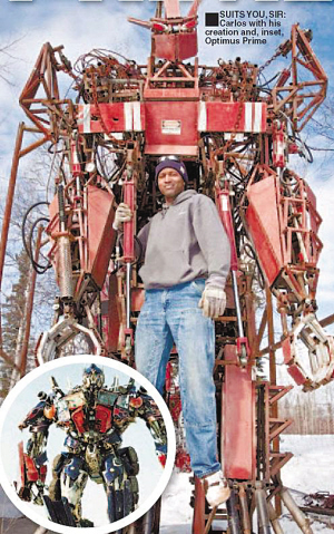 31歲的卡洛斯·歐文斯是美國(guó)阿拉斯加州瓦斯拉市的一名前美軍機(jī)械師,同時(shí)也是一名《變形金剛》系列電影的忠實(shí)粉絲。由于職業(yè)關(guān)系,卡洛斯平時(shí)特別喜歡擺弄各種機(jī)械零件,因此多年來(lái)他一直渴望造出一個(gè)《變形金剛》電影中那樣威力無(wú)比、并可任意變形的“機(jī)械戰(zhàn)士”。