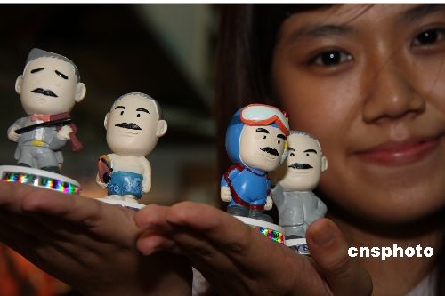 7月19日,“2009海峽兩岸大學(xué)博覽會(huì)”在臺(tái)北、高雄同步舉行。臺(tái)灣中山大學(xué)在高雄展區(qū)推出該校學(xué)生設(shè)計(jì)的Q版孫中山先生公仔,造型生動(dòng)、可愛(ài),吸引眾多學(xué)生問(wèn)津。該博覽會(huì)由中時(shí)集團(tuán)主辦,因臺(tái)灣教育主管部門臨時(shí)“喊卡”,大陸高校無(wú)緣參與。中新社發(fā) 董會(huì)峰 攝