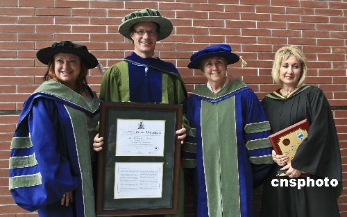 六月二十六日,中國最知名的加拿大人大山先生在天津出席“天津理工大學(xué)和湯姆遜大學(xué)學(xué)士畢業(yè)典禮”,并榮獲由湯姆遜大學(xué)頒發(fā)的榮譽(yù)博士學(xué)位。這一榮譽(yù)學(xué)位肯定了大山先生通過國際教育形式為建立全球文化與經(jīng)濟(jì)的接軌所作出的貢獻(xiàn)。湯姆遜大學(xué)(TRU)與天津理工大學(xué)合作的工商管理學(xué)士學(xué)位項(xiàng)目始于2002年。到目前為止,已有558名中國學(xué)生獲得了中加這兩所大學(xué)同時(shí)頒發(fā)的工商管理學(xué)士學(xué)位,這兩所大學(xué)在商科教育領(lǐng)域的成功合作,已經(jīng)成為中加合作辦學(xué)的典范。中新社發(fā) 王磊 攝