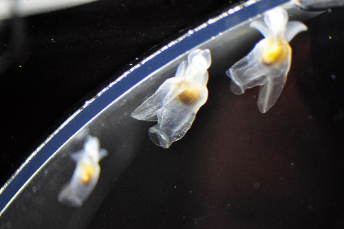 據(jù)了解,這種海洋浮游生物學(xué)名叫做Clione limacina),通常生活在南極、北極的寒冷海域。由于其喜好寒冷且身體晶瑩透明,于是便有了“冰海小精靈”的美稱。有部分該生物生活在日本最寒冷的北海道地區(qū),被當?shù)厝艘暈榧榈南笳,稱為“流水天使”。另外,相似的浮游生物物種也有生活在溫熱水域的情況,而這次捕獲“小精靈”,屬于日本北海道“流水天使”的近親。這種生物體型最大不過3公分,通常生活在離岸水域,人們對它的生活習(xí)性至今不是十分清楚。