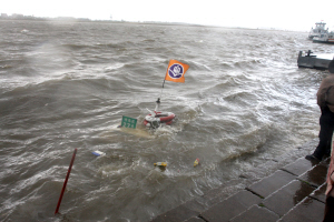 14時(shí)許,在道外區(qū)北五道街區(qū)段松花江邊的一艘小型客船被狂風(fēng)掀起的浪花撞得劇烈搖晃,灌進(jìn)許多水后沉入水中,僅露出艙頂一面小旗,所幸當(dāng)時(shí)船上沒有人。
