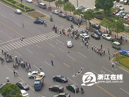 5月15日上午9時35分許,蕭山區(qū)金城路浙商銀行門口發(fā)生一起車禍,一輛白色寶馬車撞上了一輛橫穿馬路的電動車,電動車上的一家三口摔倒在地,小女孩頭部受創(chuàng),電動車被撞出去近20米遠(yuǎn)。隨后,三名傷者被送往蕭山醫(yī)院和蕭山中醫(yī)院進(jìn)行搶救,小女孩和媽媽傷勢比較嚴(yán)重。