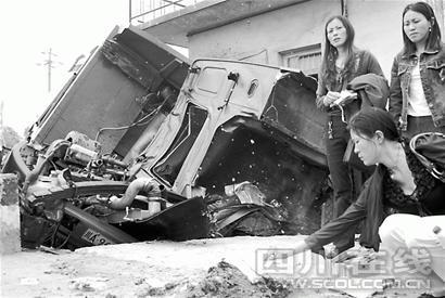 水箱躺在鐵路邊,空氣中還有股汽油味,一輛牌照為“川A96753”的紅色大貨車斜斜地抵住道口旁值班室的墻,駕駛室也因劇烈的撞擊而嚴(yán)重變形。道路兩旁的欄桿除斷了一根外,其他3根都齊齊地向著天上。地上,靜靜地躺著已經(jīng)停止呼吸的車主趙德明,聞訊趕來的妻子已哭到暈倒!爱(dāng)時我們在樓上睡覺都遭弄醒了,房子在抖,還以為地震了,抱起娃娃就朝樓下跑!弊≡陔x道口不到10米遠(yuǎn)的一位大姐說,他們跑下來時,只見一輛大貨車已經(jīng)倒在了道口值班室的墻邊,“里面的人動都沒動一下,119趕來時,人都死了!