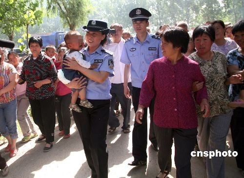 6月1日,山東菏澤市“5.18”搶奪、拐賣兒童案成功告破,李某等5名犯罪嫌疑人全部落網(wǎng)。據(jù)悉,2009年5月18日,許某剛滿周歲的兒子跟姥姥在村頭玩耍時(shí)被2名歹徒搶走,后又以4萬元的價(jià)格出賣。菏澤市公安局牡丹分局刑警連續(xù)奮戰(zhàn)13個(gè)晝夜,終將犯罪嫌疑人抓獲,將幼兒平安解救出來,小偉偉重返父母懷抱。中新社發(fā) 劉心中 攝