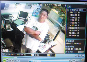 發(fā)現(xiàn)了小偷蹤跡的工作人員急忙報警,為了保存證據(jù),技術(shù)人員還在民警的要求下將錄像進行了下載,并以文件的形式保存在了電腦中。從監(jiān)控錄像中可以看出,這名男子的年齡在40歲上下,身體較胖。當(dāng)時他身穿一件寬大的T恤衫和一條卡其色的短褲。剛開始時,男子是以購買攝像頭的名義跟銷售人員進行咨詢,而且還查看了一款售貨員推薦的機型。