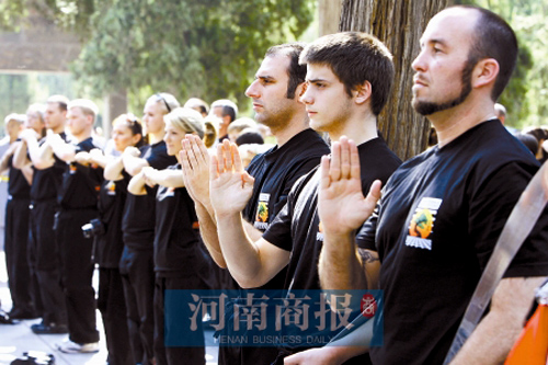 禪宗祖庭少林寺來(lái)“洋弟子”已經(jīng)不是什么稀罕事。早在1997年,美國(guó)少林拳法就已經(jīng)歸宗認(rèn)祖,并于2006年組織了河南歷史上最大規(guī)模的一次朝拜——500人歸山少林。