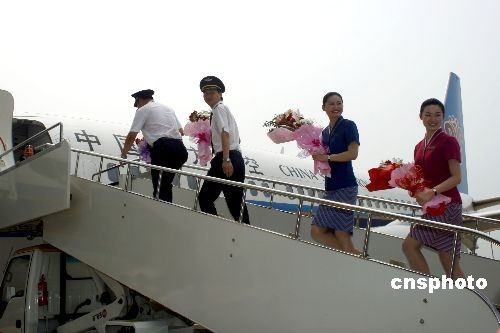 7月15日,一架中國(guó)南方航空公司嶄新的波音737—300客機(jī)滿載125名旅客,從武漢天河機(jī)場(chǎng)騰空而起,目的地臺(tái)北桃園機(jī)場(chǎng)。此次開(kāi)通臺(tái)灣直航包機(jī)是中國(guó)南方航空公司開(kāi)啟漢臺(tái)直航常態(tài)化的首航。此次航班的旅客中61%是武漢市及周邊地區(qū)的大陸居民赴臺(tái)觀光的旅游團(tuán)隊(duì),另外的39%是散客,主要以公商務(wù)和探親旅客居多,也有部分是返臺(tái)的臺(tái)胞。中新社發(fā) 湖北分社 攝