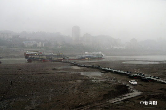 中新網(wǎng)重慶3月23日電 受去冬今春西南地區(qū)干旱影響,長(zhǎng)江、嘉陵江重慶段水位持續(xù)下降。3月23日,記者在重慶市朝天門(mén)嘉陵江與長(zhǎng)江交匯處看到,大面積河床裸露出來(lái),部分水段已見(jiàn)底。據(jù)相關(guān)部門(mén)通報(bào),截止3月22日,長(zhǎng)江重慶段水位退落至0.31米,比去年同期低了近2米。孟幻 攝
