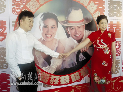 昨天的婚禮辦得非常簡單。酒席一共20桌,全部宴請的是新郎新娘雙方親朋好友。“我們就是想簡單一點,北京已辦過酒了,這次請的都是因故沒能到北京的親朋!备邖挼膵寢屜蛴浾咄嘎,回武漢簡單地辦一次酒,也是高崚和丈夫吳圣的想法!拔覀円矝]有太多的時間和精力來籌備婚禮!备邖挶硎尽