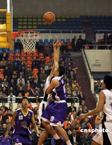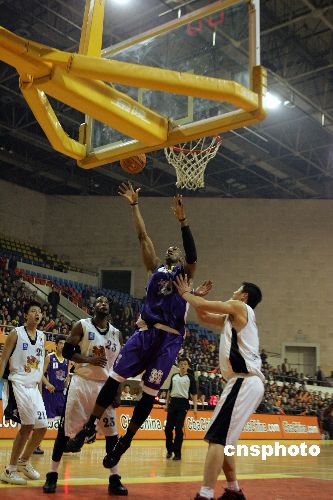 10月30日晚,在山西省太原市濱河體育中心2007-2008年CBA聯(lián)賽第二輪比賽中。山西中宇主場(chǎng)以102-95戰(zhàn)勝上海西洋,山西中宇取得新賽季首場(chǎng)勝利。中新社發(fā) 張?jiān)?攝