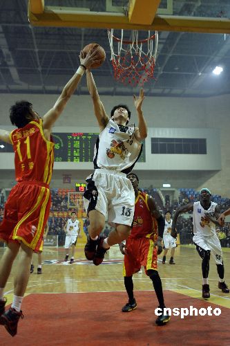 11月16日晚,在山西太原進(jìn)行的2007-2008賽季CBA聯(lián)賽第9輪角逐中,浙江廣廈隊(duì)以108:96客場戰(zhàn)勝山西中宇隊(duì)結(jié)束連敗,中宇隊(duì)則遭遇五連敗。根據(jù)賽程安排,山西中宇第10輪的對手將是浙江萬馬,而浙江廣廈將對陣北京金隅。中新社發(fā) 張?jiān)?攝