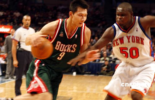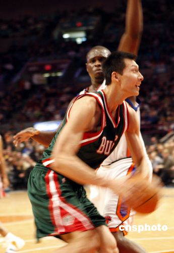 當(dāng)?shù)貢r(shí)間十一月三十日,中國球員易建聯(lián)隨其所在的密爾沃基雄鹿隊(duì)作客紐約麥迪遜花園廣場(chǎng)。在48分鐘比賽中領(lǐng)先了42分鐘,之后不僅把17分的領(lǐng)先優(yōu)勢(shì)喪失殆盡,而且最后兩分鐘讓尼克斯隊(duì)以91:88實(shí)現(xiàn)大翻盤。易建聯(lián)首發(fā)打了29分鐘入賬8分,其中陣地進(jìn)攻7投3中,罰球2罰2中。中新社發(fā) 李靜 攝