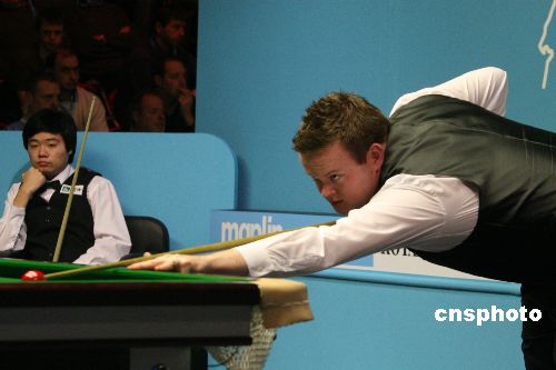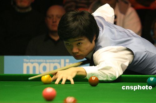 當(dāng)?shù)貢r(shí)間12月12日晚,中國斯諾克選手丁俊暉經(jīng)過十六局苦戰(zhàn),最終憾負(fù)目前世界排名第一的肖恩·墨菲,無緣英國錦標(biāo)賽四強(qiáng)。比賽非常激烈,兩人比分緊咬。中新社發(fā) 李鵬 攝