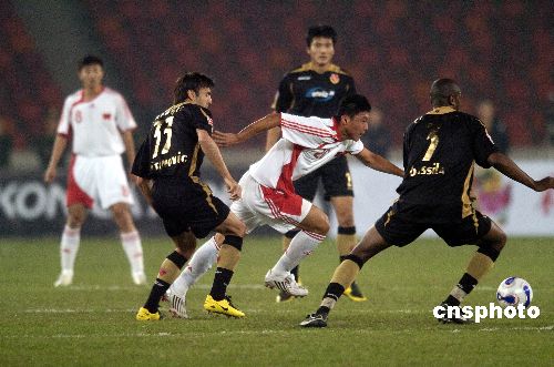 2007年12月18日晚,中國(guó)國(guó)奧隊(duì)與德甲科特布斯隊(duì)在佛山世紀(jì)蓮體育場(chǎng)交戰(zhàn),終場(chǎng)雙方1比1戰(zhàn)平。中新社發(fā) 吳峻 攝