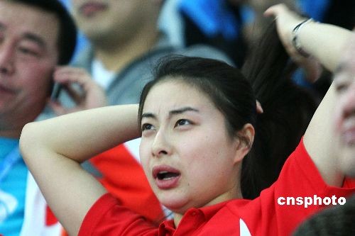 中國(guó)著名跳水運(yùn)動(dòng)員郭晶晶到場(chǎng)為隊(duì)員加油助威。中新社發(fā) 富田 攝