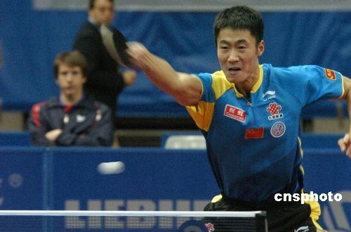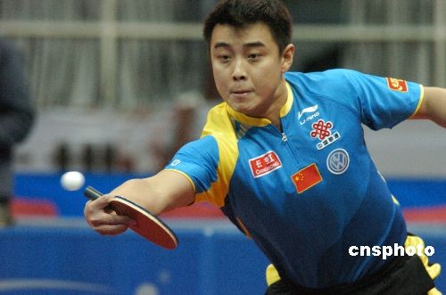 二月二十六日,第四十九屆世界乒乓球錦標(biāo)賽男子團體賽在廣州進行第三輪角逐,中國隊的王勵勤、馬琳、王皓組成豪華陣容,以三比零完勝對手克羅地亞隊,取得小組賽三連勝。中新社發(fā) 柯小軍 攝