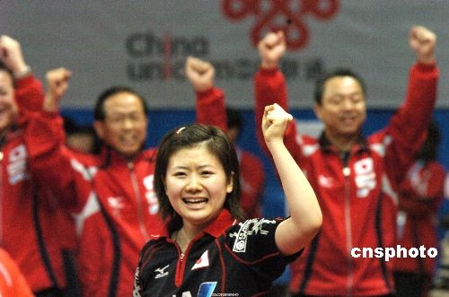圖:世乒賽福原愛幫助日本隊?wèi)?zhàn)勝韓國隊