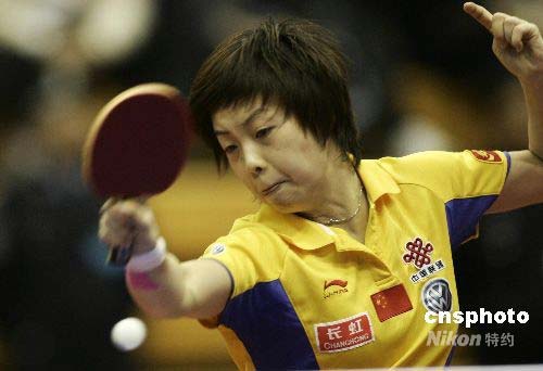 圖:中國(guó)乒乓球公開(kāi)賽張怡寧殺入四強(qiáng)
